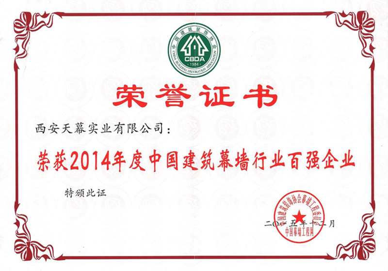 2014年度中國(guó)建筑幕墻行業(yè)百?gòu)?qiáng)企業(yè)