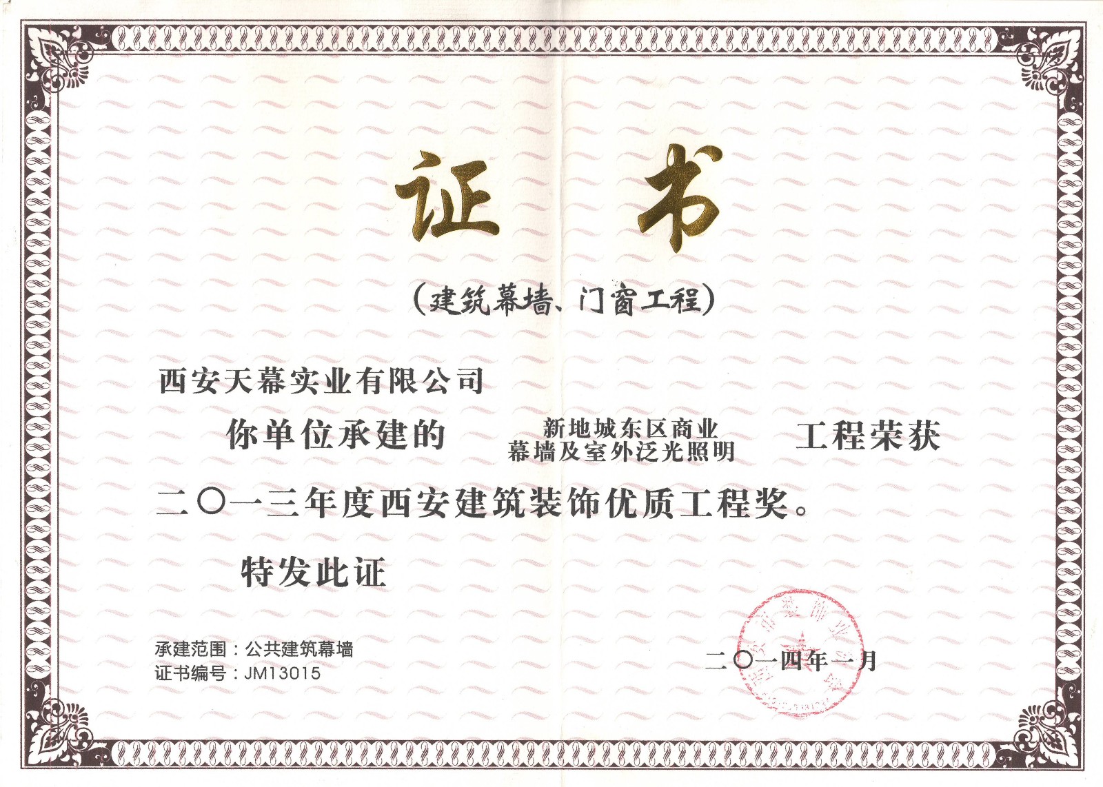 2013年“雁塔杯”——西安新地城凱德廣場項目
