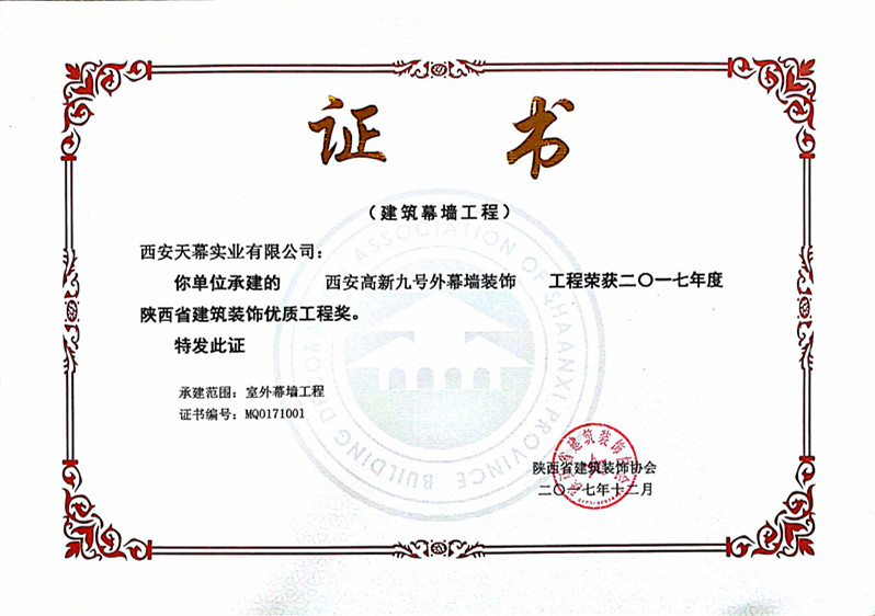 2017年度陜西省建筑裝飾優(yōu)質(zhì)工程——西安高新九號(hào)