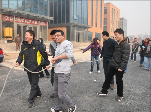 2011年12月25日,在我公司樓前空地,舉行了“西安天幕實(shí)業(yè)有限公司圣誕拔河比賽”。本次大賽以促進(jìn)各部門(mén)之間交流為宗旨,豐富員工生活為目的,各部門(mén)員工踴躍參與,紛紛以極大的熱情參與到此次活動(dòng)中。