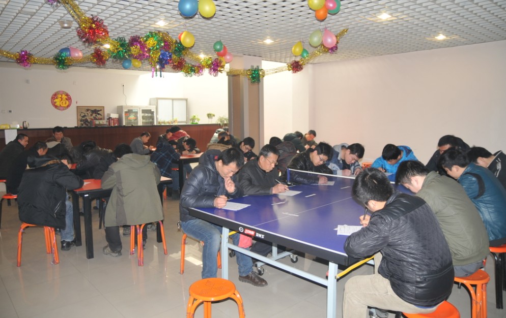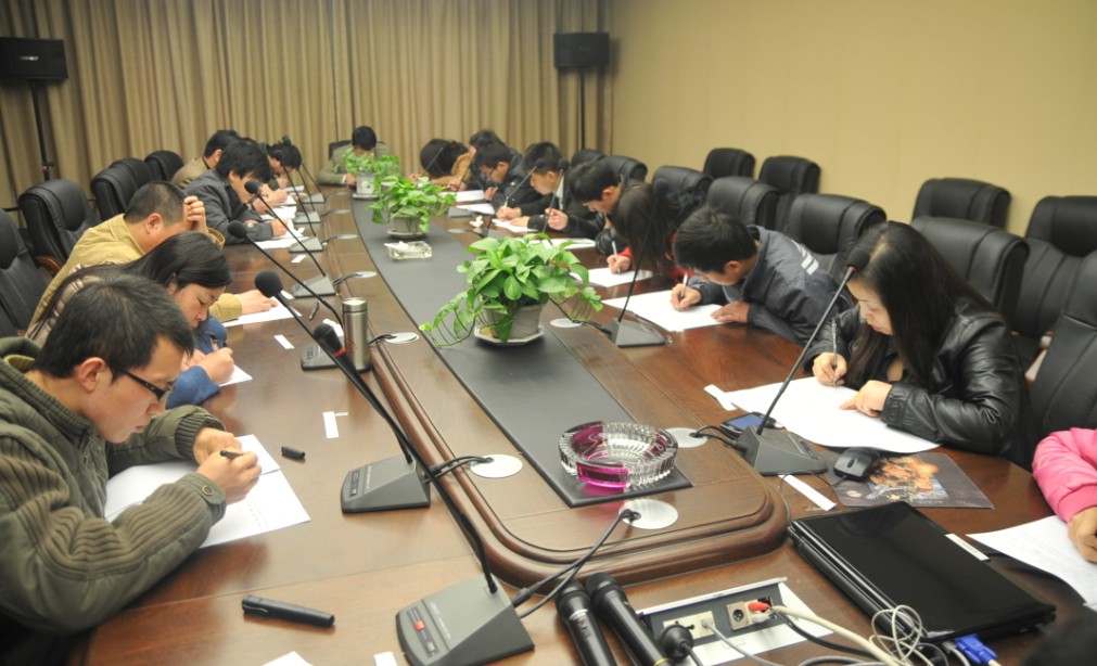 為了加強(qiáng)企業(yè)內(nèi)部文化建設(shè)及學(xué)習(xí)氛圍,2013年2月27日,我公司分別在地下室、一樓會(huì)議室、三樓會(huì)議室設(shè)立1、2、3號(hào)考場,開展為時(shí)兩個(gè)小時(shí)的部門標(biāo)準(zhǔn)流程考試,考試人員針對(duì)公司全體同仁,由楊書記出題,吳總經(jīng)理監(jiān)考。