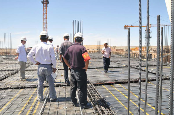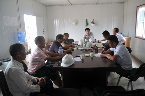 在這里,吳總認真聽取了項目部管理部工作人員的工作匯報,詳細了解了當(dāng)前工程進展情況,對全體工作人員的不懈努力表示了充分的肯定,又和他們一起對下一步的工作進行具體的安排和部署,他要求全體員工把施工安全放在首位。