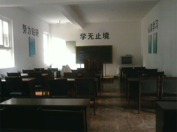 我們特別參觀了這里的農(nóng)民工學(xué)校,走入教室,窗明幾凈,“學(xué)無止境”幾個(gè)大字醒目的位于前臺(tái)正中,可以想象,工作休息之余,我們的農(nóng)民工兄弟們也會(huì)來到這里充實(shí)他們的文化生活,這既避免了施工過程中的某些安全隱患,同時(shí)也提高了建設(shè)隊(duì)伍的整體素質(zhì)。