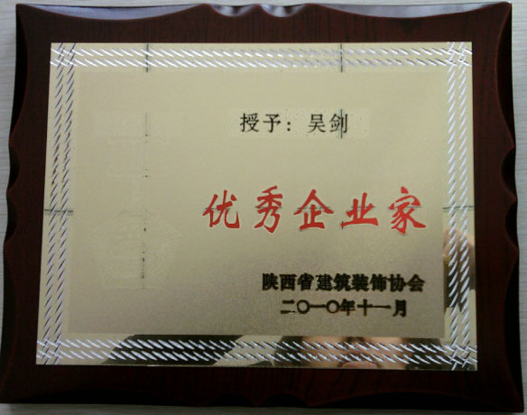 在本月25日召開(kāi)的陜西省建筑裝飾協(xié)會(huì)第三次會(huì)員代表大會(huì)上,我公司再次喜獲陜西省建筑裝飾協(xié)會(huì)頒發(fā) “陜西省建筑裝飾行業(yè)優(yōu)秀企業(yè)”獎(jiǎng)及“陜西省建筑裝飾協(xié)會(huì)第二屆優(yōu)秀會(huì)員單位”獎(jiǎng),公司吳總獲 “優(yōu)秀企業(yè)家”獎(jiǎng)。這是對(duì)我公司近年工作成績(jī)的肯定。
