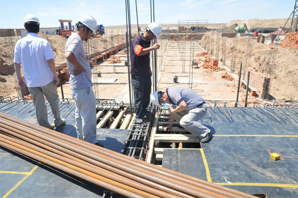搬進(jìn)新建彩板房,水電、網(wǎng)線都已接通,大家的心情好多了,沒有剛來時那么壓抑和無助的感覺了。我們項目部也召開了第一次會議,進(jìn)行分工。我分管了安全、質(zhì)量、材料進(jìn)場程序及周邊衛(wèi)生工作。 大家抱著滿腔的熱血投入在新的工作中。常言說得好,“三人一條心黃土變成金”,在項目部團(tuán)結(jié)和努力下,我們克服了重重困難,在工作中有時意見不統(tǒng)一,我們也吵過架,經(jīng)研究協(xié)商后,大家都各盡其責(zé),認(rèn)真工作;還有時因其他原因,材料不能如期進(jìn)場,我們都心急萬分,覺得萬般無奈,偷偷地流過淚;我們有時心想,項目部孤身作戰(zhàn)在新疆,不像內(nèi)地,材料當(dāng)天就能買到,或施工設(shè)計有誤差,工程部設(shè)計部當(dāng)天就能到場解決。而我們一個釘子、一斤鐵絲都要從百公里外市內(nèi)拉來,裝材料常常裝一天,甚至裝到深夜。在這緊張繁忙的工作中,大家不分上下班,不分白天和黑夜,盡管很辛苦,但大家工作都很拼命,例如:打混凝土,打到晚上幾點,我們就值班到幾點。有時,打兩天兩夜,都是輪流休息。在這里不比內(nèi)地,方圓百公里沒有商混站,就一個站,而且價格很高,都是現(xiàn)款交易,時供時停,為了趕工期,我們想方設(shè)法,找站上領(lǐng)導(dǎo),求情照顧。盡管打商混很難,我們死纏硬磨,好話多說,最終想方設(shè)法,解決了商混供應(yīng)問題,沒有讓工程停下來。